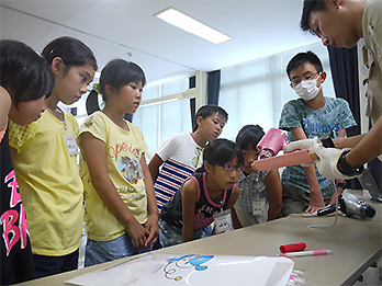 西日本電線は、今年も夏休みの7月27日に「こどもさんかんび」と題して、従業員の子どもたちを対象に、職場見学を実施しました。当日は、14家族18名の小学生の子どもたちが参加しました。